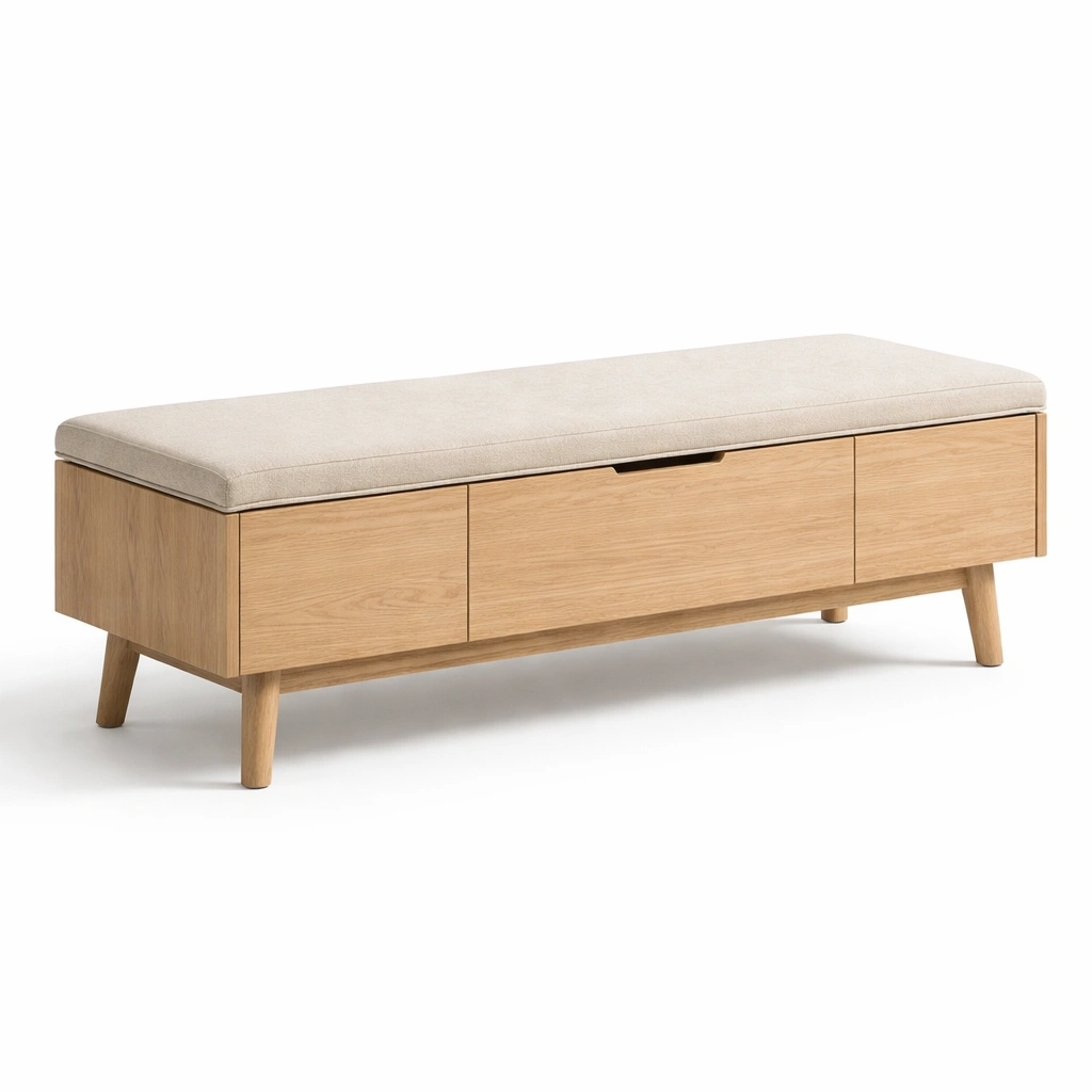 Banco con almacenamiento de tela y madera en verde 140x40x45cm
