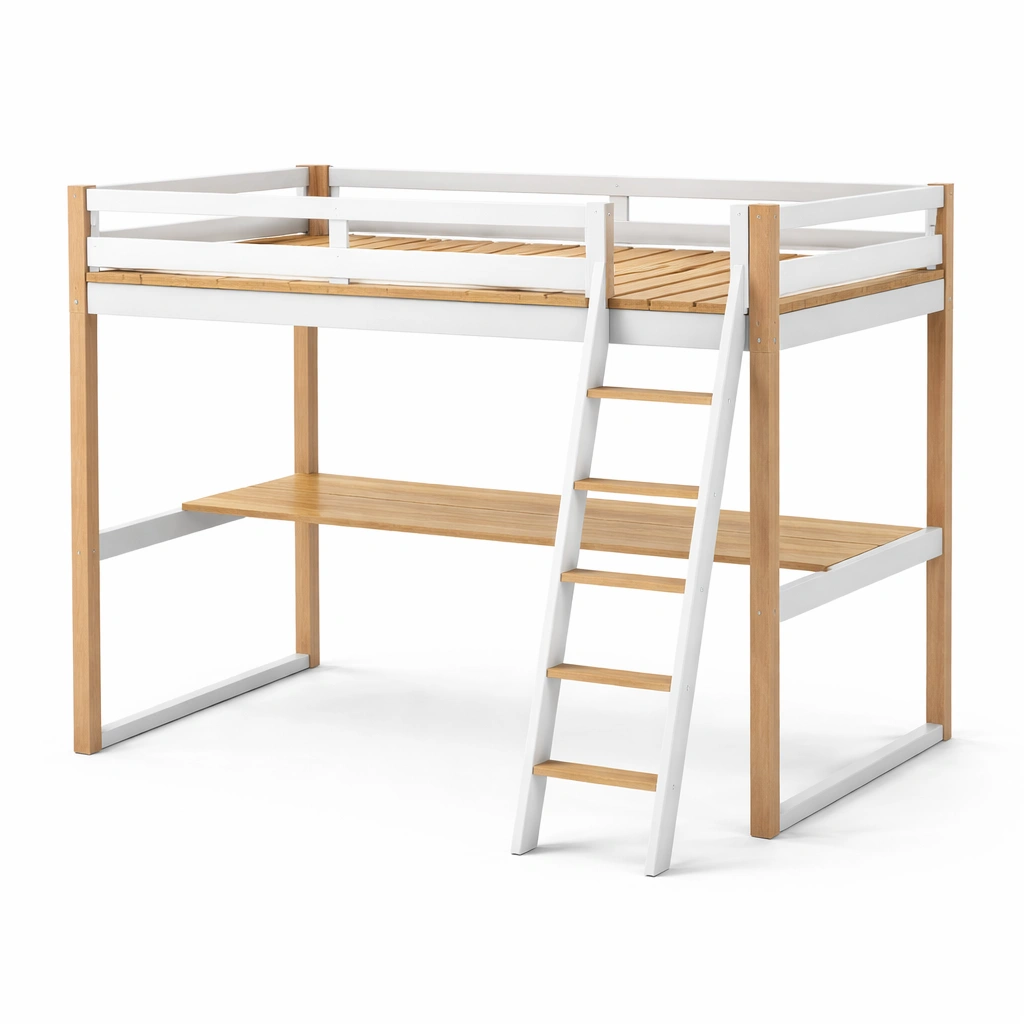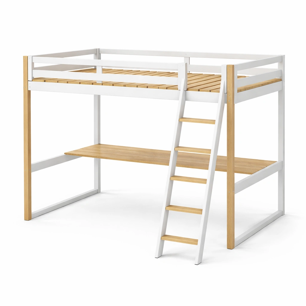Cama loft Alta de Madera con Escritorio Integrado y Escalera