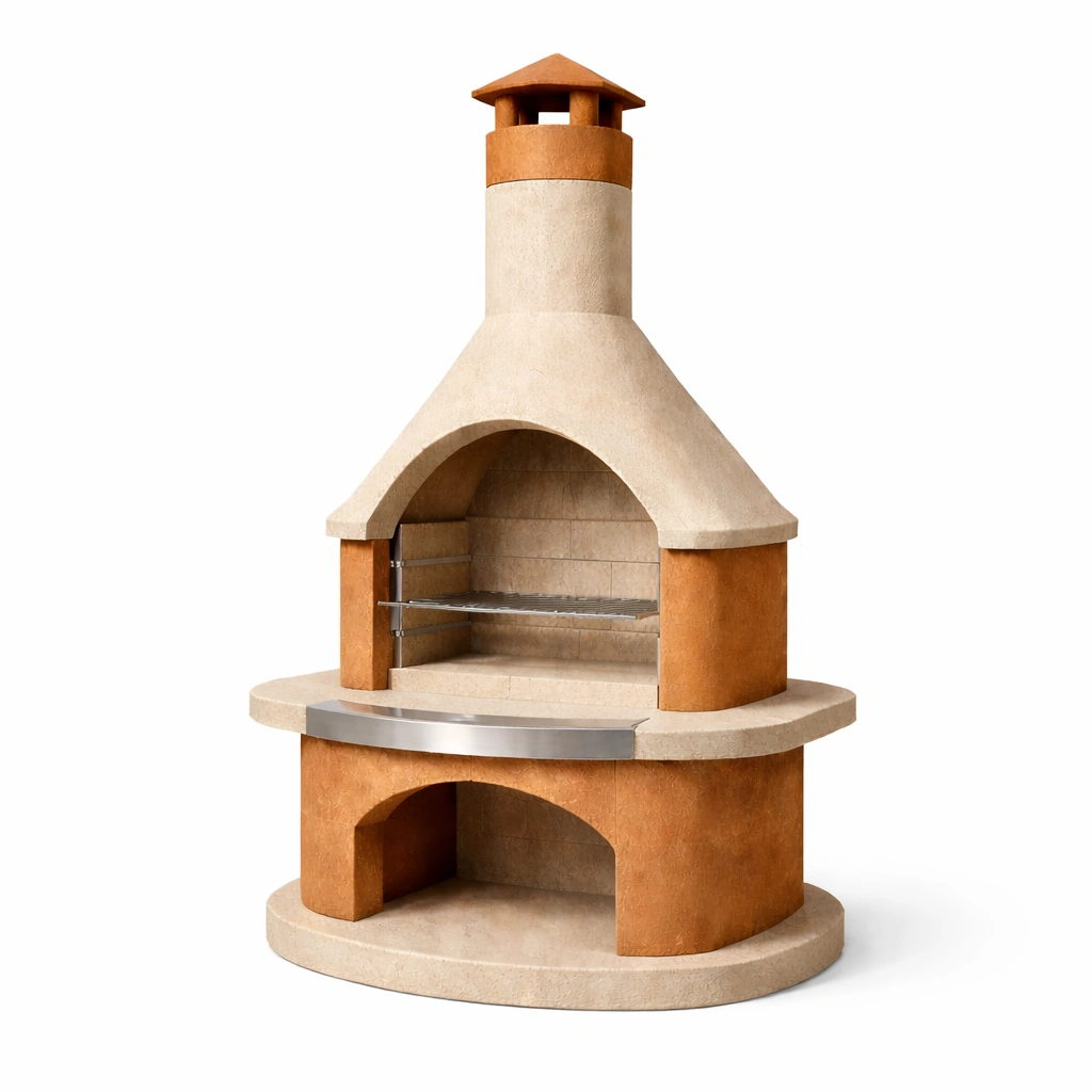 Barbacoa exterior con estructura de hormigón reforzado, garantizando durabilidad y estabilidad. Incluye rejilla regulable de acero inoxidable para cocción. Dimensiones: 190 cm de altura, 120 cm de ancho y 80 cm de profundidad.