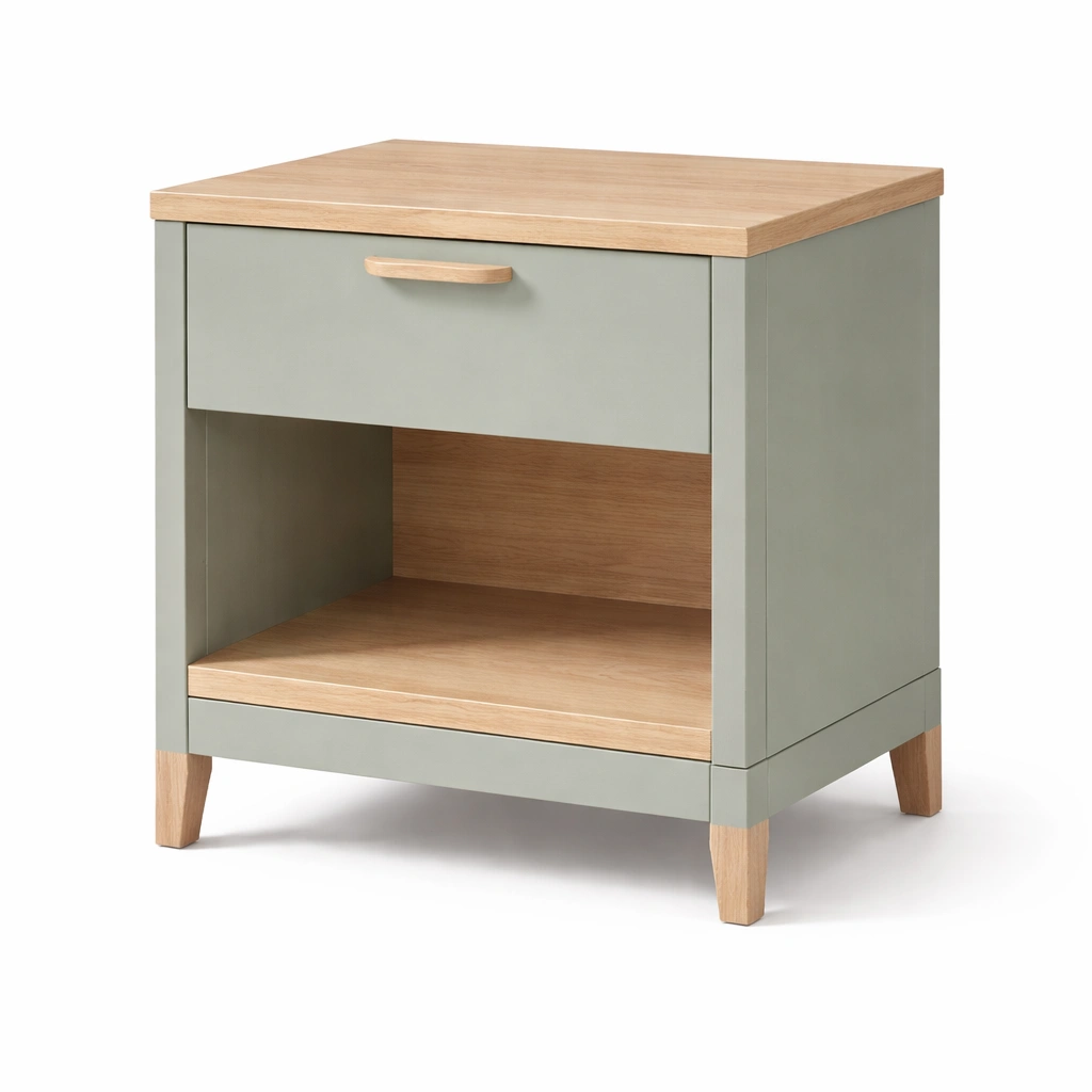 Material principal: MDF con chapado en roble. Patas de madera de haya.